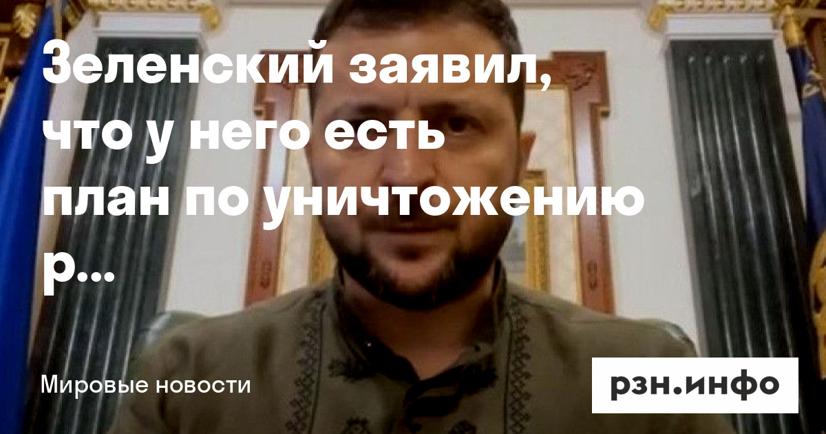 Зеленский заявил, что у него есть план по уничтожению российской армии. Об этом пишет URA.ru.
