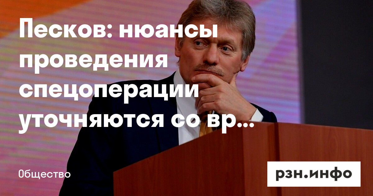 Пресс-секретарь президента России Дмитрий Песков заявил, что нюансы проведения СВО уточняются со временем. Его слова приводит .