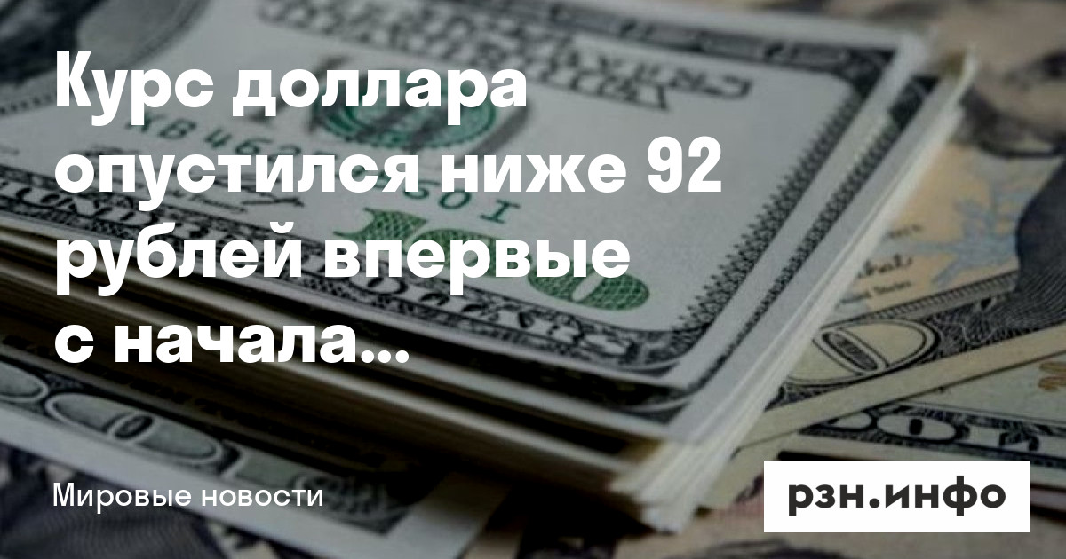 Курс доллара опустился ниже 92 рублей впервые с начала апреля