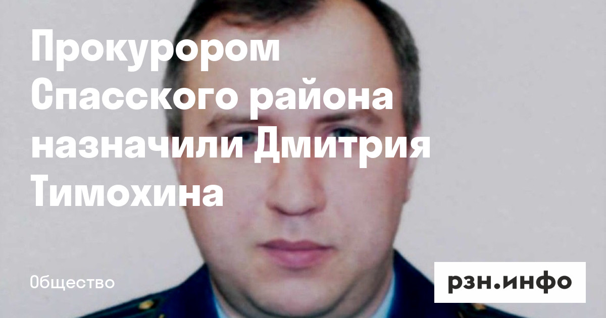 Прокурором Спасского района назначили Дмитрия Тимохина. Об этом редакции РЗН. Инфо сообщили в пресс-службе прокуратуры.