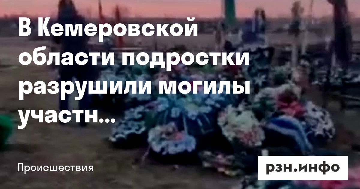В Кемеровской области подростки разрушили могилы участников СВО. Об этом сообщает Telegram-канал «Плохие новости».