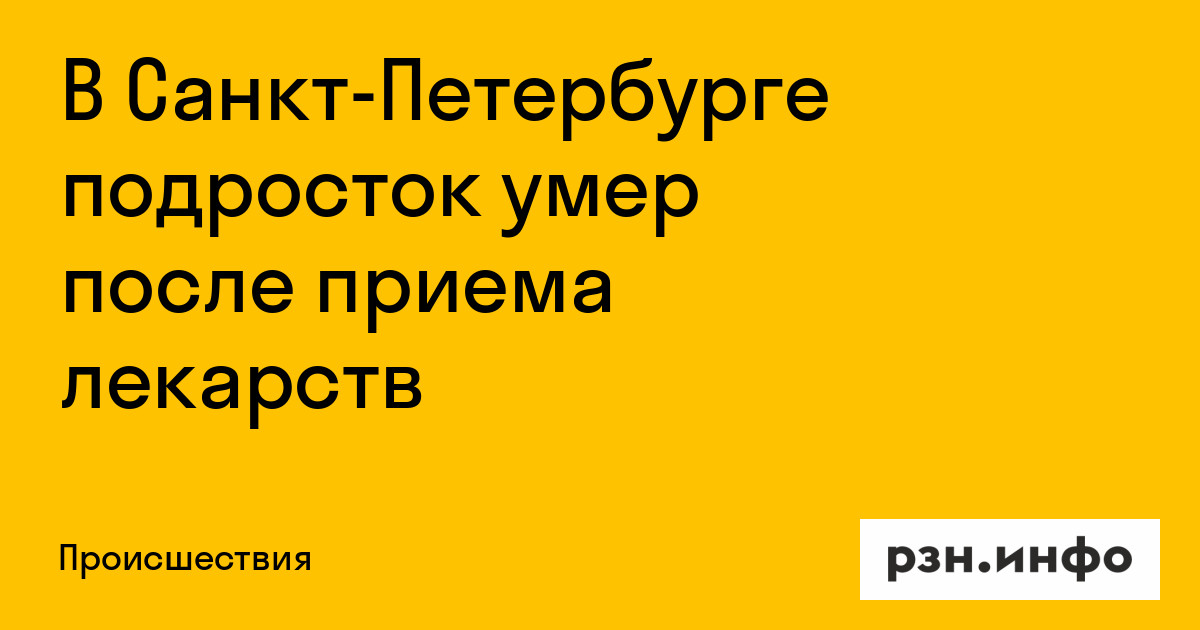 В Санкт-Петербурге подросток умер после приема лекарств. Об этом сообщают «».