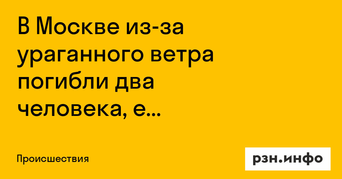 В Москве из-за ураганного ветра погибли два человека, еще 15 пострадали. Об этом сообщает РИА Новости со ссылкой на мэра Москвы Сергея Собянина.