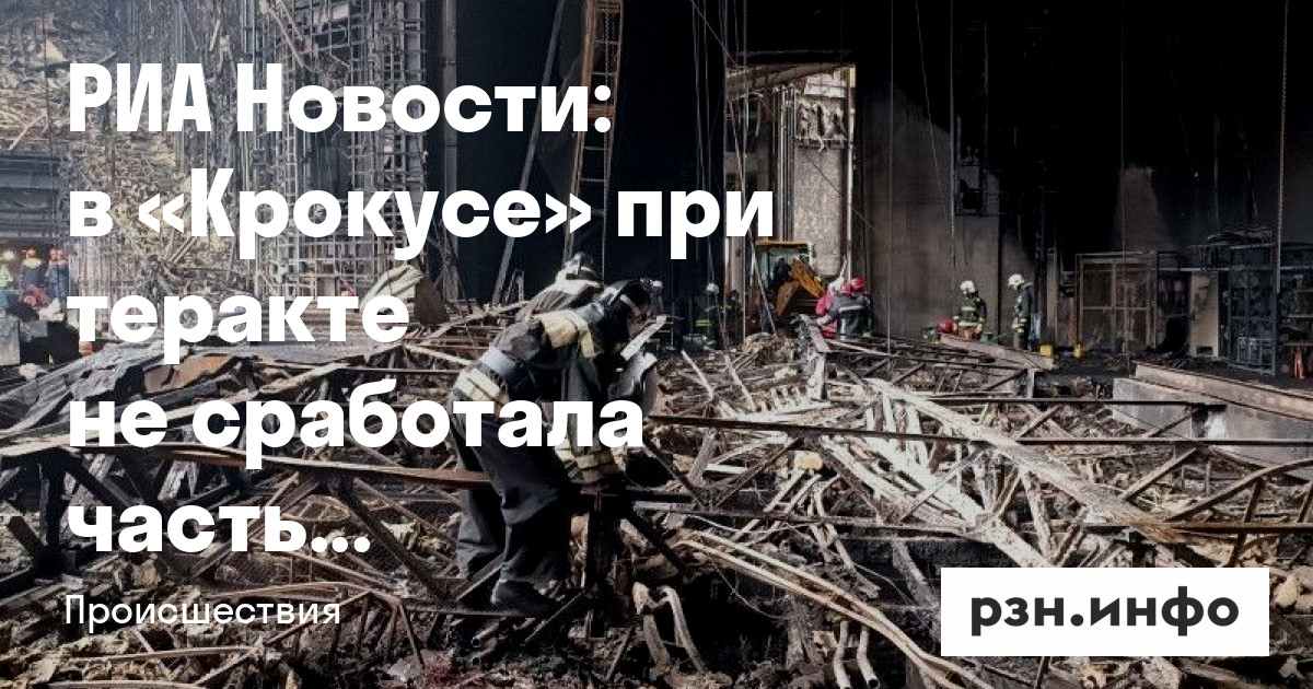 РИА Новости: в «Крокусе» при теракте не сработала часть системы пожаротушения