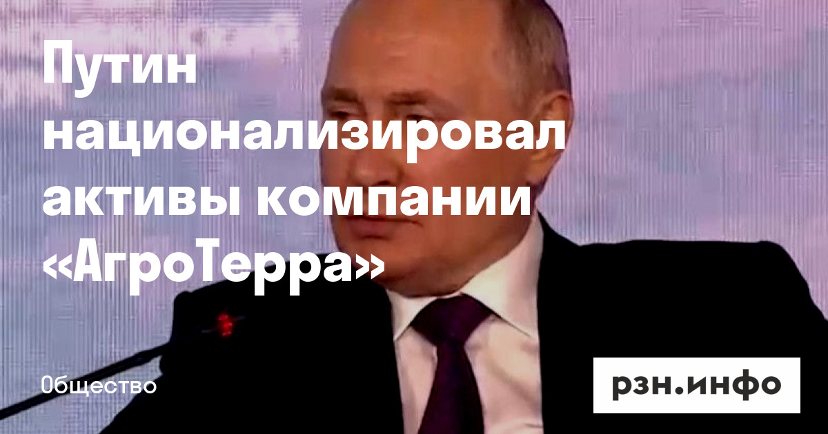 Путин национализировал активы компании «АгроТерра». Об этом сообщается на сайте Кремля.
