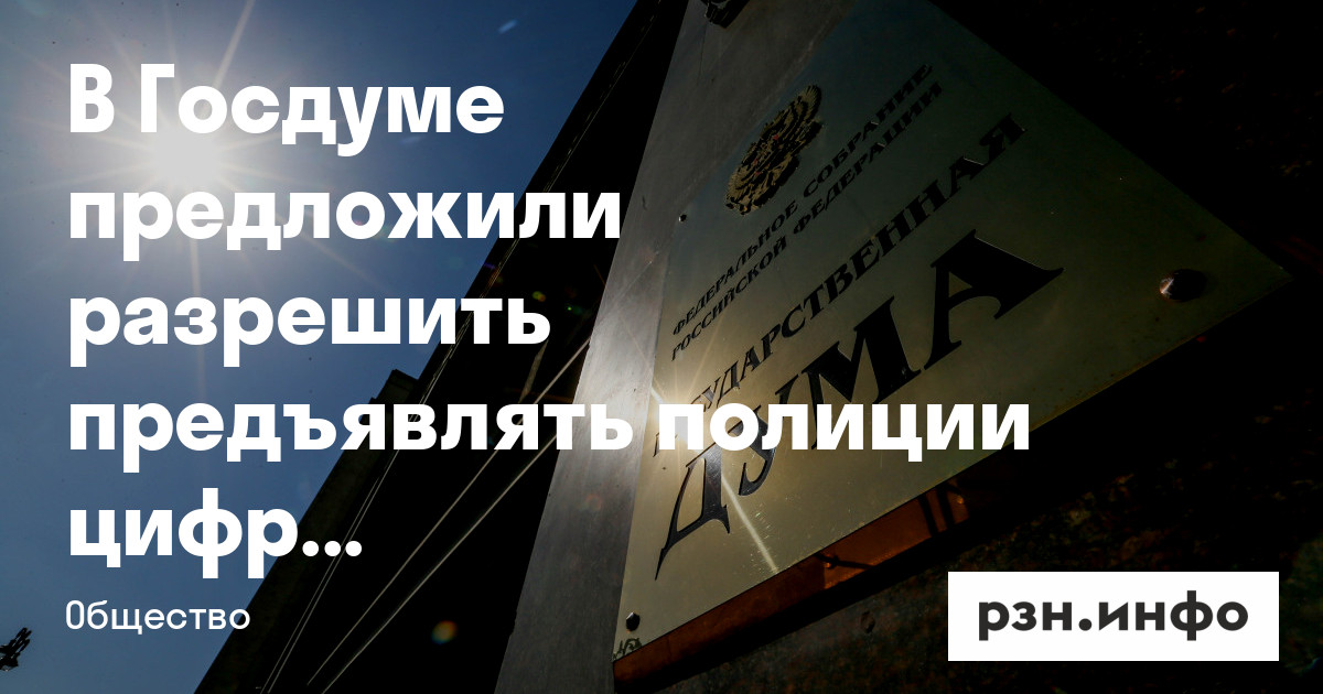 В Госдуме предложили разрешить предъявлять полиции цифровые паспорта. Об этом сообщило РИА Новости.