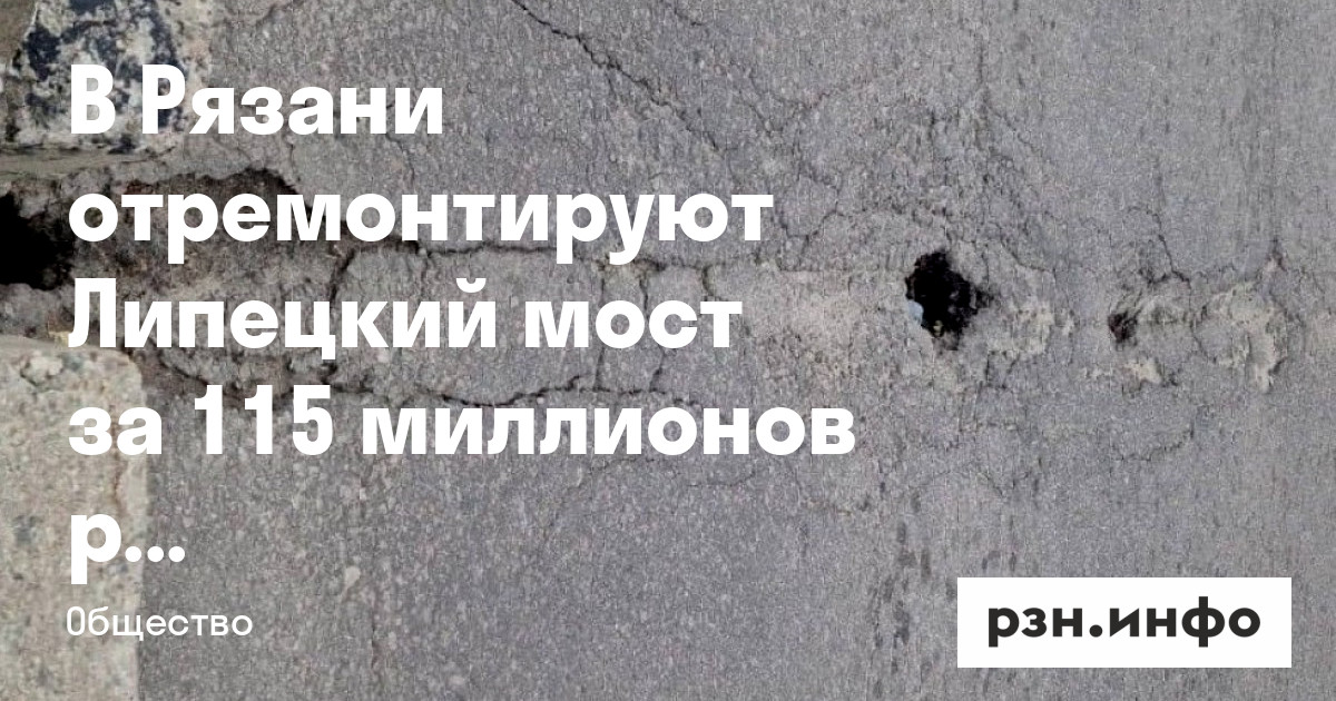 В Рязани на ремонт моста через реку Лыбедь на улице Маяковского выделили 115 миллионов 40 тысяч 169 рублей. Соответствующую информацию опубликовали на сайте госзакупок.