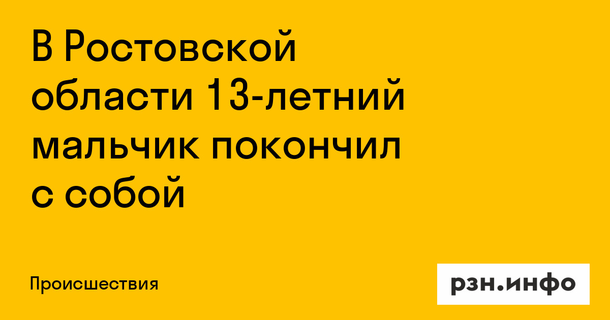 В Ростовской области 13-летний мальчик покончил с собой. Об этом сообщает Baza.