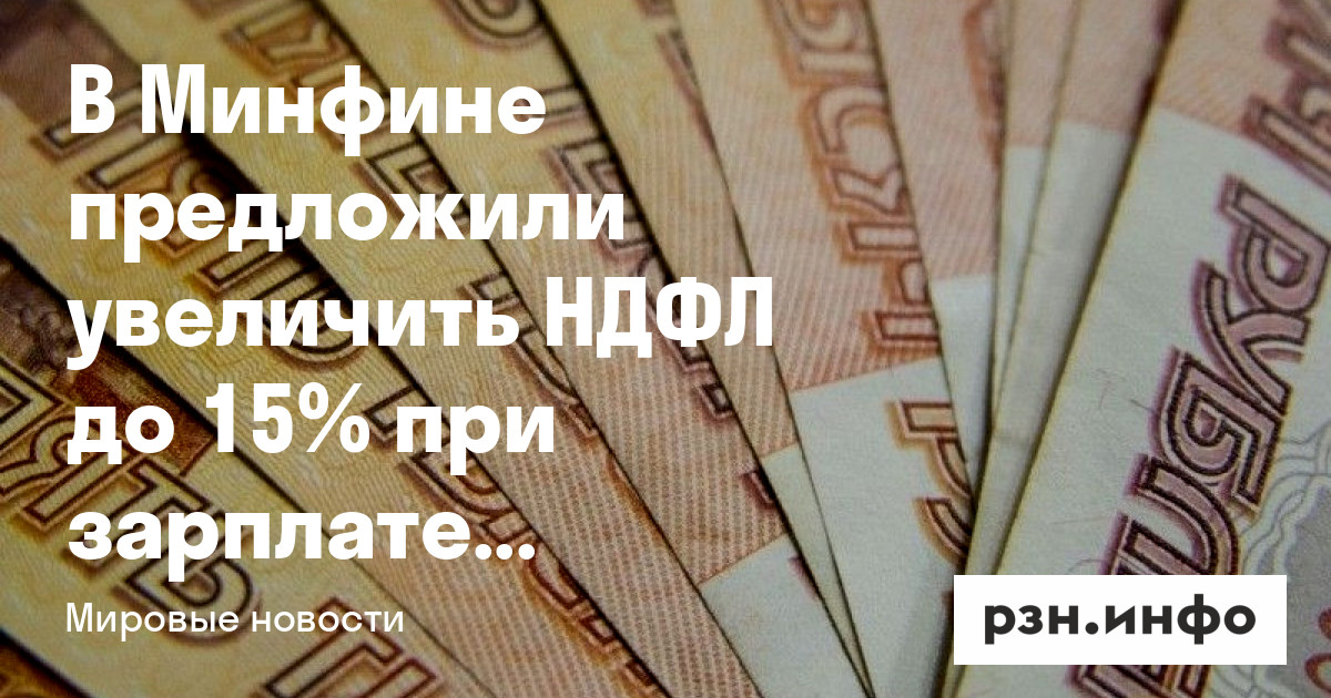 В Минфине предложили увеличить НДФЛ до 15% при зарплате от 200 тысяч рублей