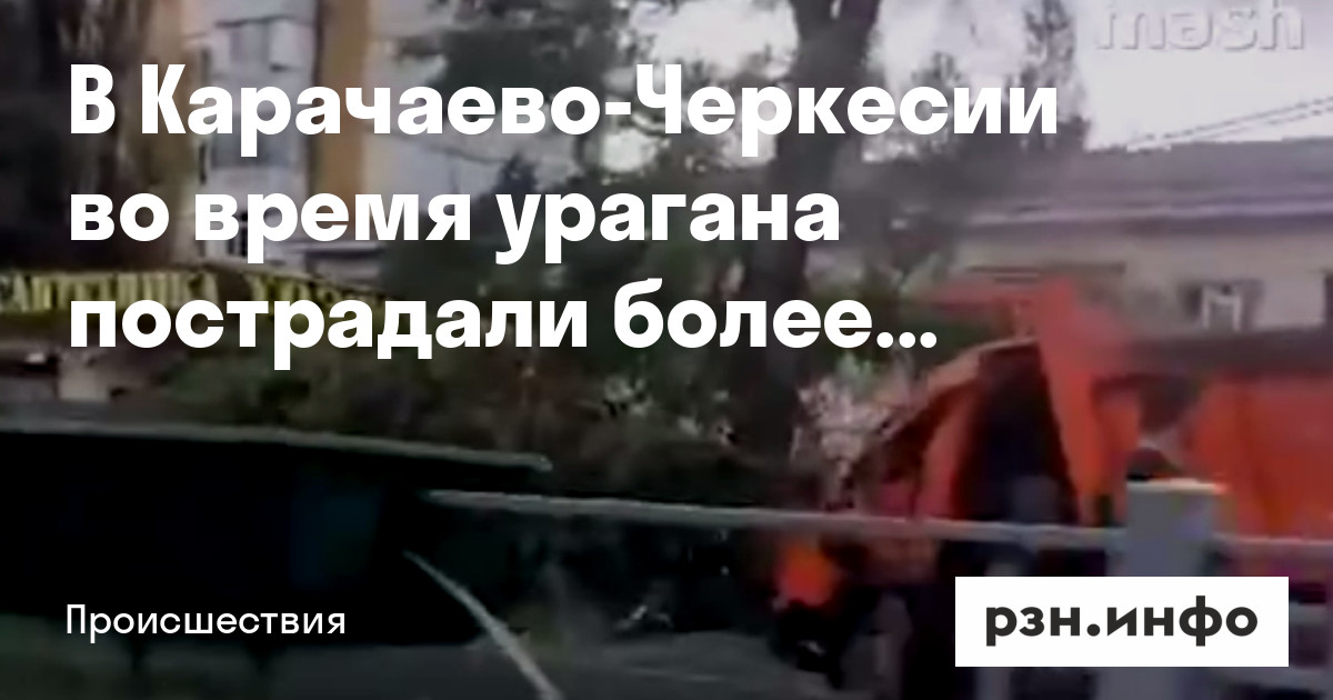 Минимум 32 человек пострадало и один погиб во время урагана в Карачаево-Черкесии. Троих в тяжелом состоянии госпитализировали.