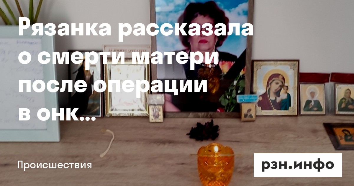 Рязанка рассказала о смерти матери после операции в онкодиспансере. Пост об этом в понедельник, 6 мая, опубликовали в группе «Рязанское здравоохранение» ВКонтакте.
