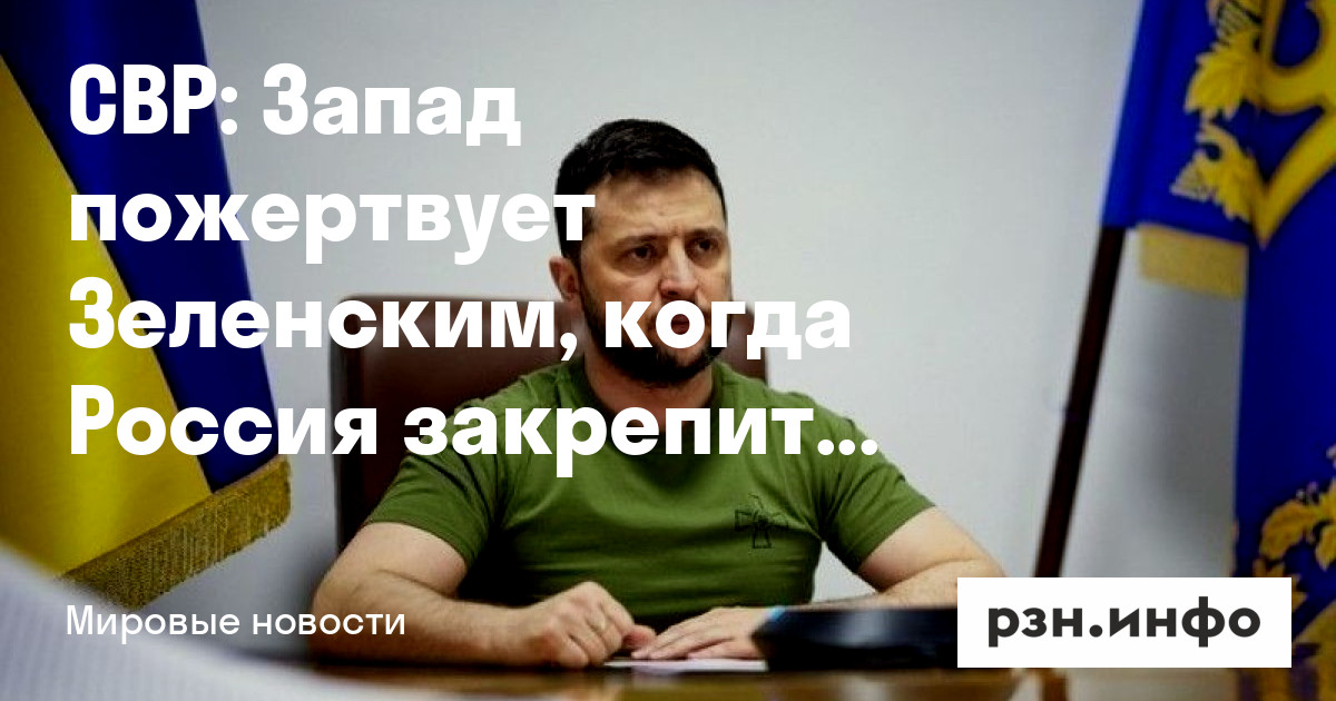 Запад планирует пожертвовать Зеленским, когда Россия закрепит успехи на поле боя. Об этом заявили в Службе внешней разведки РФ.