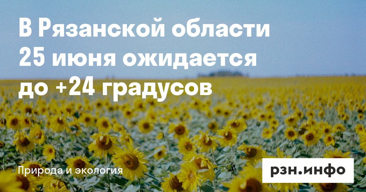 В Рязанской области во вторник, 25 июня, ожидается до +24 градусов. Прогноз погоды опубликовало региональное ГУ МЧС.