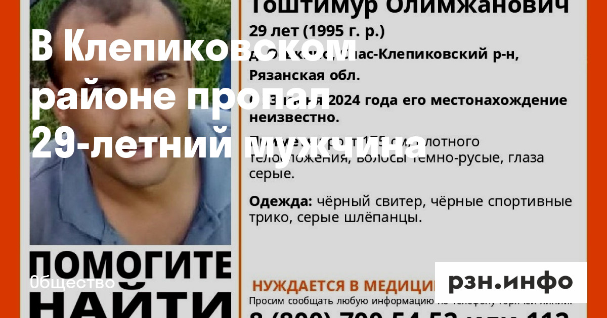 В Клепиковском районе пропал 29-летний мужчина. Об этом сообщил поисково-спасательный отряд «ЛизаАлерт».