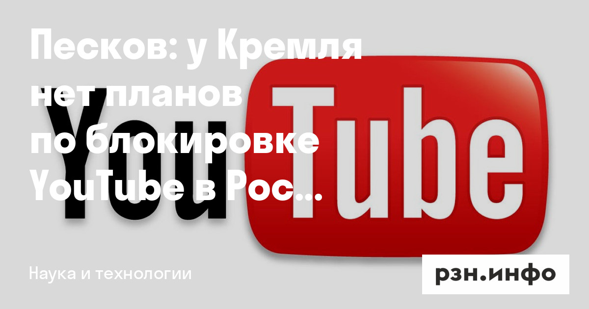 Песков: у Кремля нет планов по блокировке YouTube в России