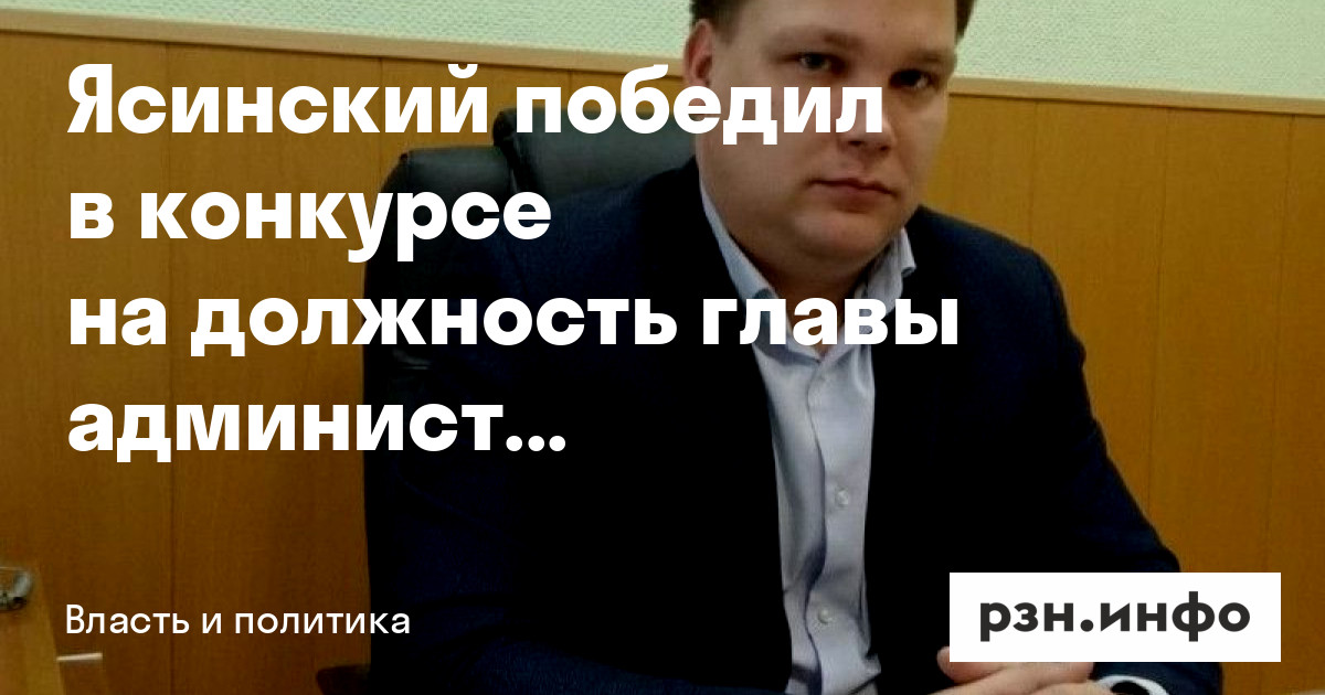 Борис Ясинский победил в конкурсе на должность главы администрации Рязанского района. Об этом сообщило издание «Вид сбоку» со ссылкой на члена конкурсной комиссии, депутата облдумы Владислава Сафронова.