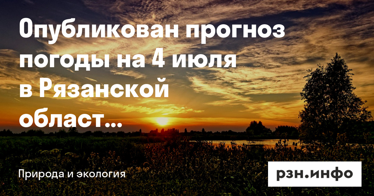 Опубликован прогноз погоды на четверг, 4 июля, в Рязанской области. Информация опубликован на сайте регионального ГУ МЧС.