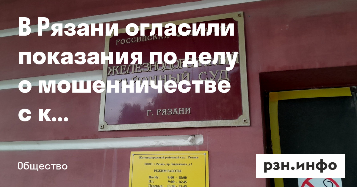 В среду, 19 июня, в Железнодорожном суде Рязани продолжили оглашать показания свидетелей по делу о хищении бюджетных средств по закупке коммунальной техники. Об этом сообщил корреспондент РЗН. Инфо.