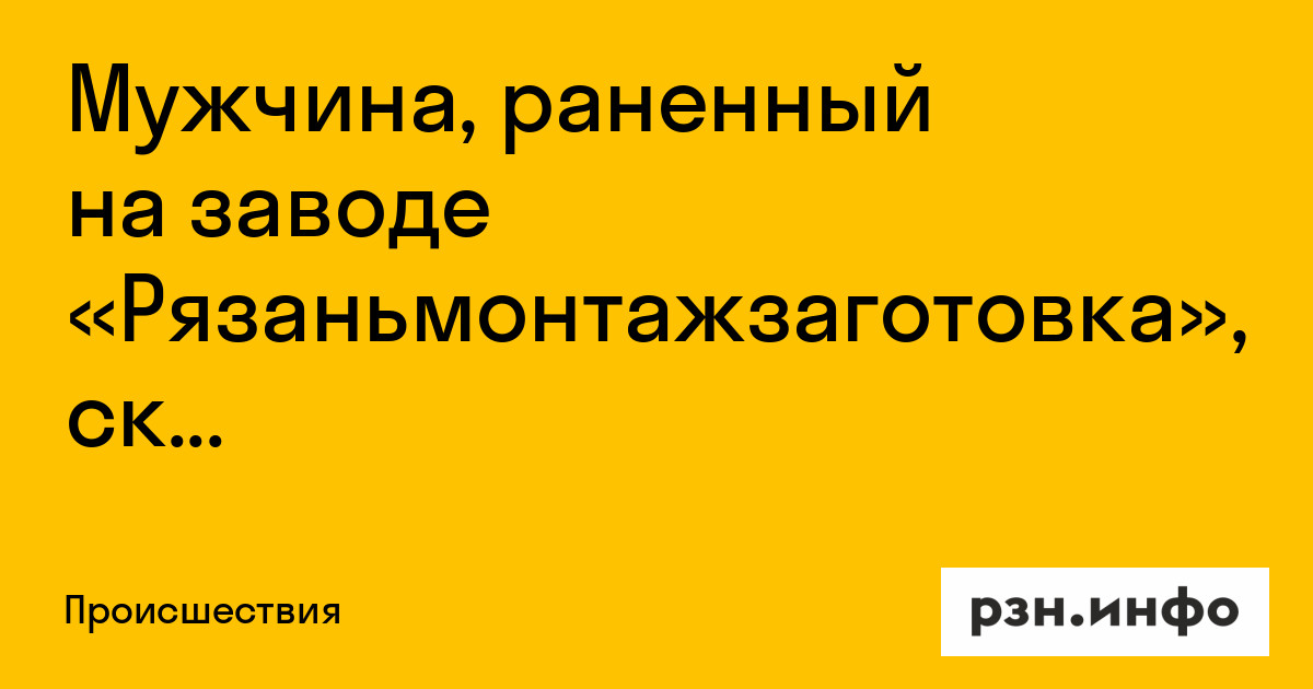 Мужчина, раненный на заводе «Рязаньмонтажзаготовка», скончался в больнице. Об этом сообщает Telegram-канал «Усы Куракиной».