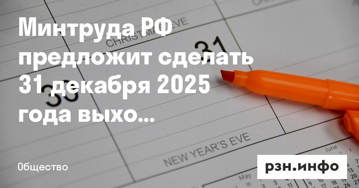 Минтруда РФ предложит сделать 31 декабря 2025 года выходным