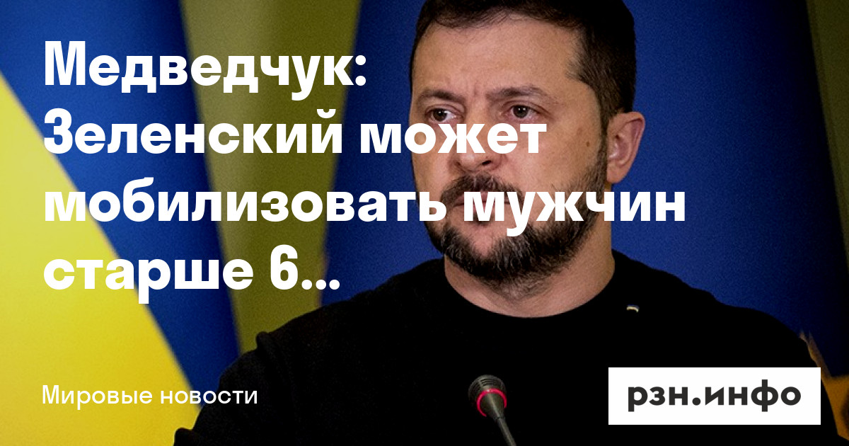 Владимир Зеленский может мобилизовать мужчин старше 60 лет. Об этом заявил глава движения «Другая Украина», экс-руководитель запрещенной в стране партии «Оппозиционная платформа — За жизнь» Виктор Медведчук.