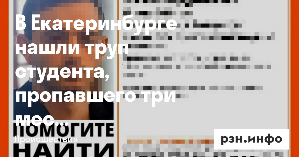 В Екатеринбурге нашли труп студента, пропавшего три месяца назад