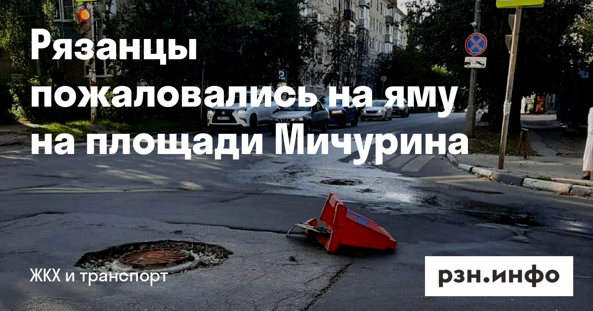 По словам рязанцев, яму на площади Мичурина не могут заделать уже два месяца.