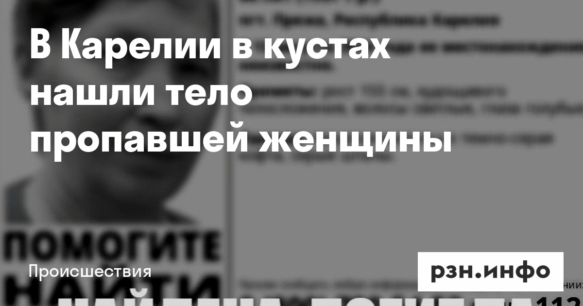 В Карелии в кустах нашли тело пропавшей женщины