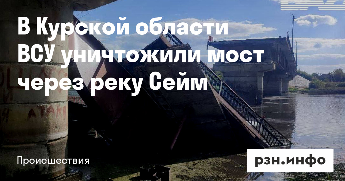 В Курской области ВСУ уничтожили мост через реку Сейм. Об этом в пятницу, 16 августа, сообщил Telegram-канал «Baza».