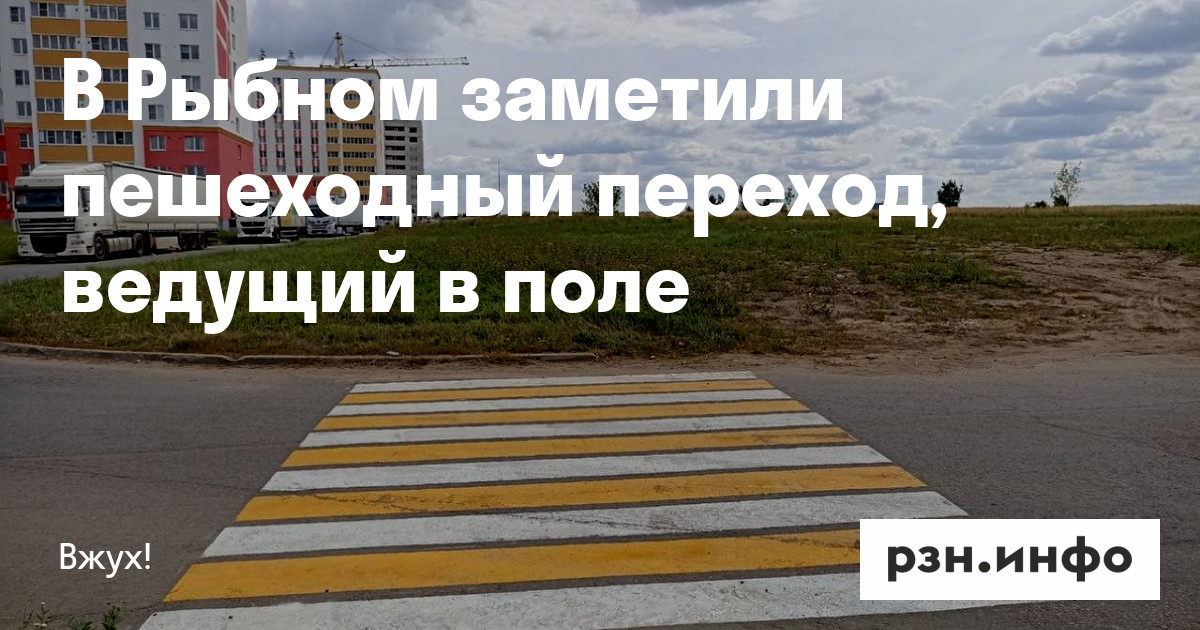 В Рыбное сфотографировали пешеходный переход, ведущий в поле. Какой-либо остановки, знака или тротуара поблизости нет. Пост опубликовал Telegram-канал «Рыбное Онлайн».