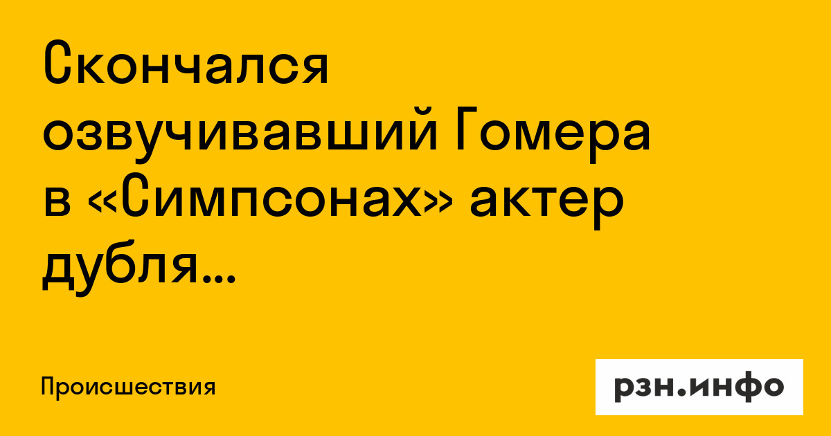 Скончался озвучивавший Гомера в «Симпсонах» актер дубляжа Борис Быстров