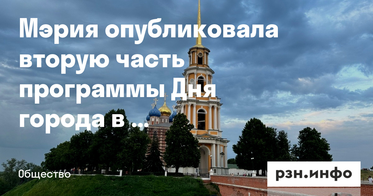 Мэрия опубликовала вторую часть программы Дня города в Рязани. Ее опубликовали на официальном сайте администрации.