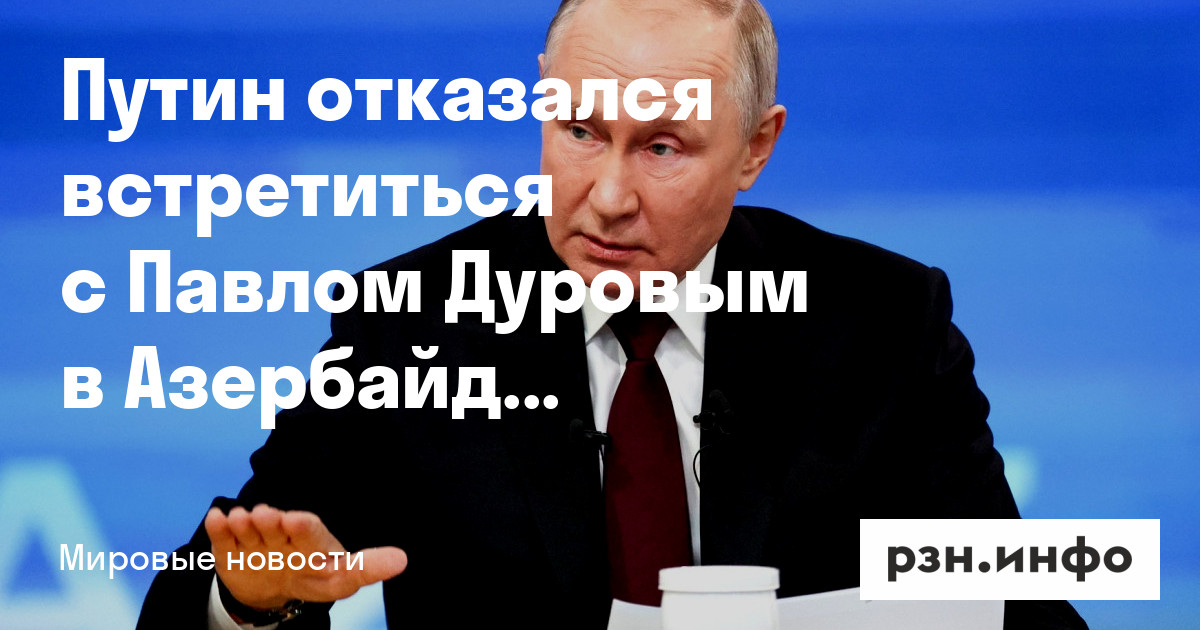 Путин отказался встретиться с Павлом Дуровым в Азербайджане. Об этом во вторник, 20 августа, сообщил Telegram-канал «Baza».