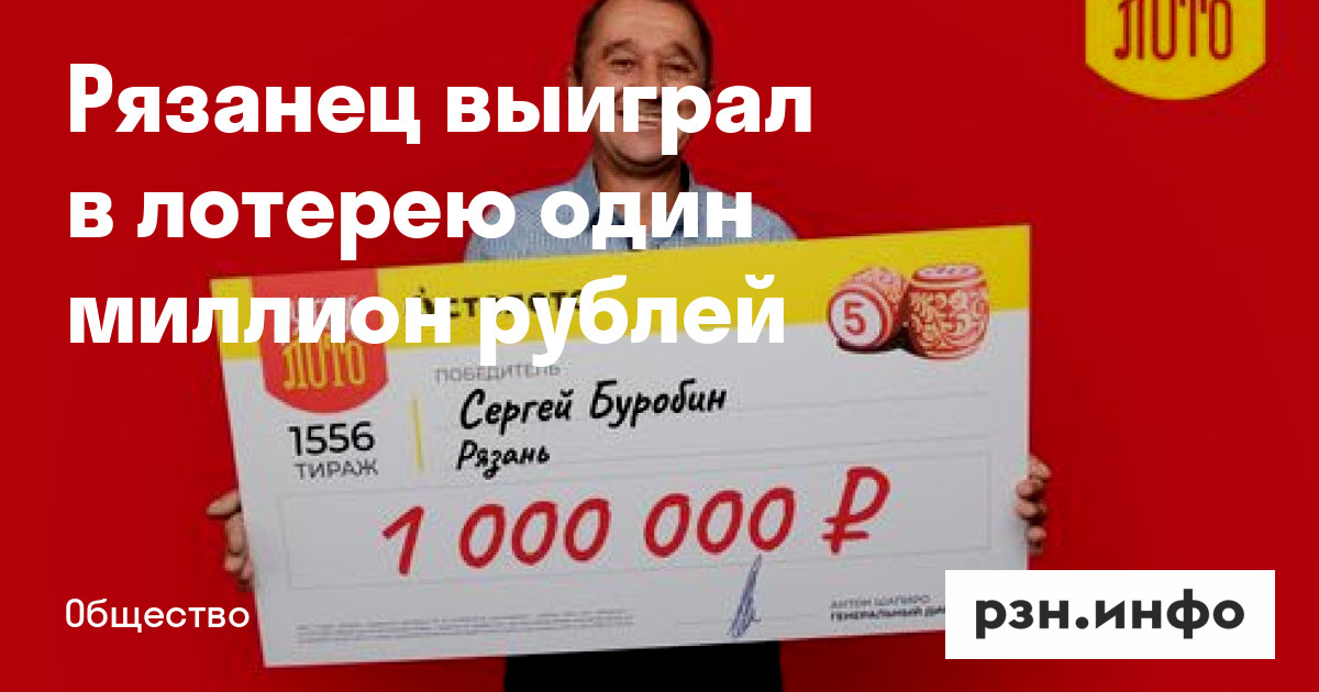 Житель Рязани Сергей Буробин выиграл в лотерею один миллион рублей. Об этом 20 августа сообщает пресс-служба «Столото».