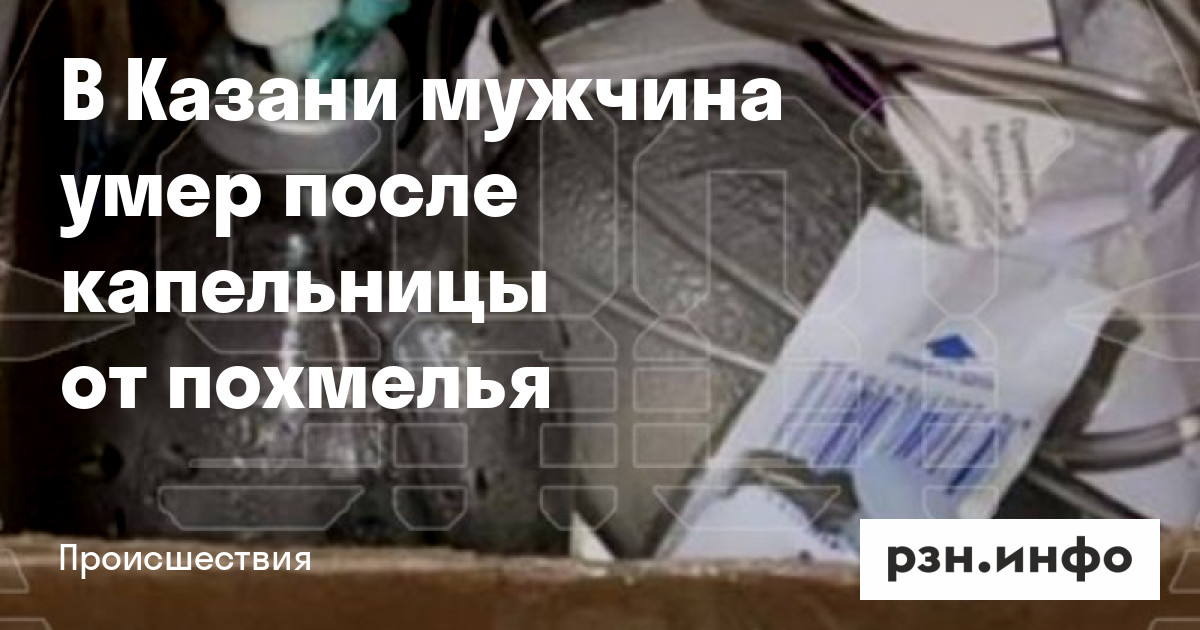 В Казани мужчина умер после капельницы от похмелья. Об этом в среду, 21 августа, сообщил Telegram-канал «SHOT».