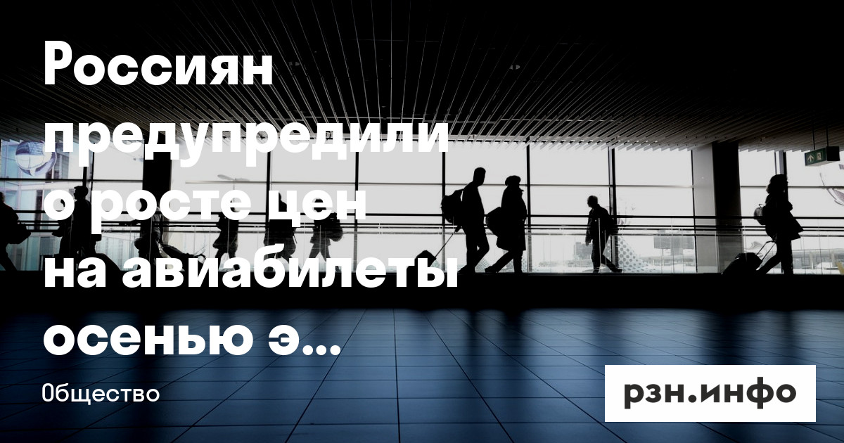 Россиян предупредили о росте цен на авиабилеты осенью этого года. Об этом сообщают «».