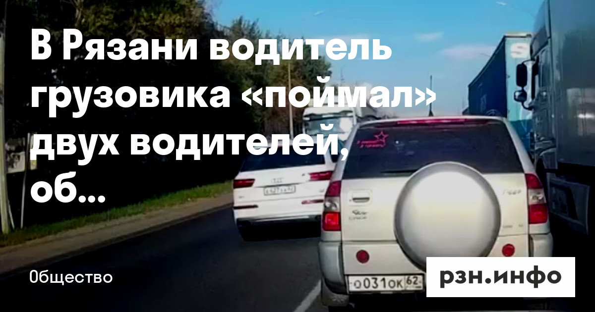 В Рязани водитель грузовика «поймал» двух водителей, которые объезжали пробку по «встречке». Видео появилось в Telegram-канале «Шлагбаум».