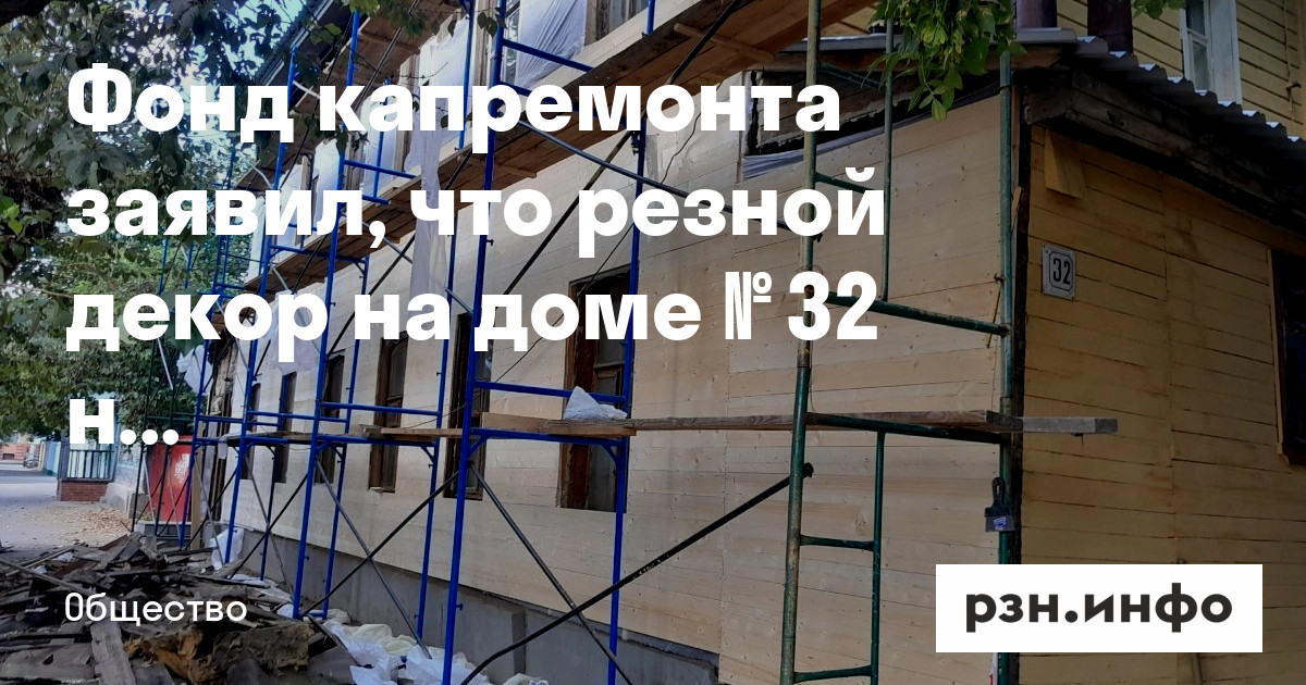 Фонд капитального ремонта заявил, что после жалоб рязанцев на уничтожение резного декора на доме № 32 по улице Кудрявцева его восстановят. Об этом РЗН. Инфо рассказали в ведомстве.