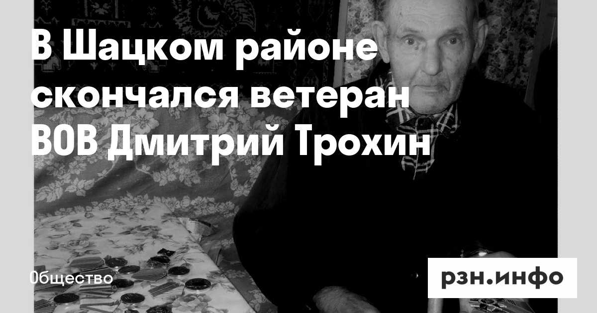 В Шацком районе скончался ветеран ВОВ Дмитрий Трохин. Об этом в среду, 28 августа, сообщил ИД «Пресса».