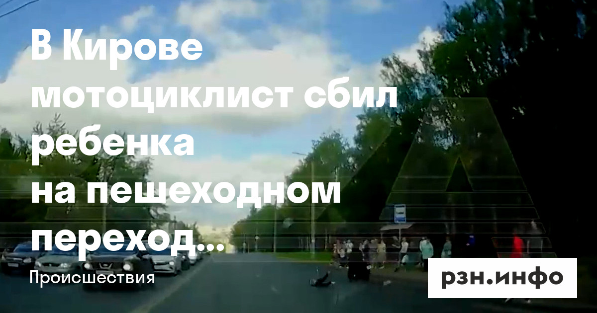 В Кирове мотоциклист сбил ребенка на пешеходном переходе. Об этом в пятницу, 30 августа, сообщил Telegram-канал «Baza».