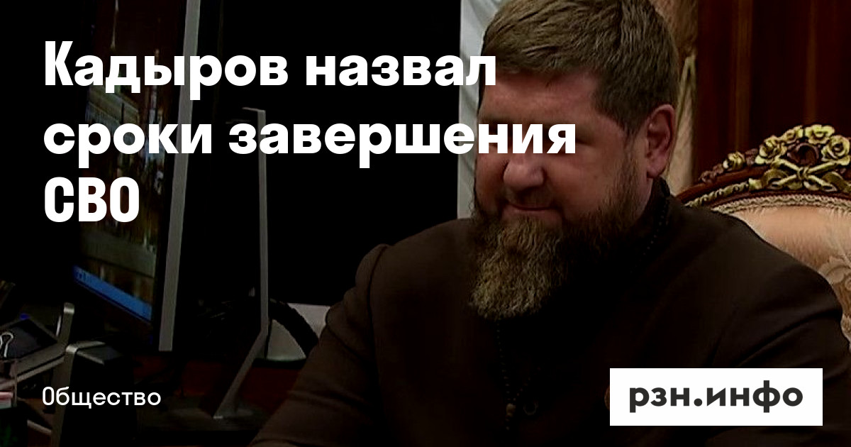 Глава Чечни Рамзан Кадыров назвал сроки завершения СВО. Об этом пишет ТАСС со ссылкой на телеканал «Россия 1».
