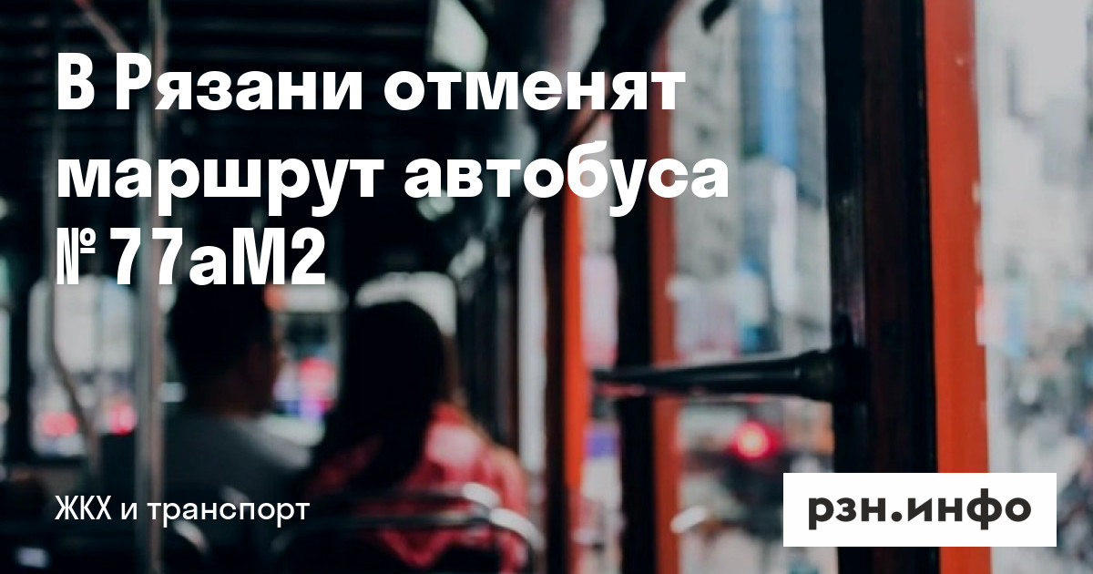 В Рязани отменят муниципальный маршрут автобуса № 77аМ2 «поселок Карцево — поселок Мехзавода». Соответствующее постановление горадминистрации опубликовали на сайте «Рязанских ведомостей».