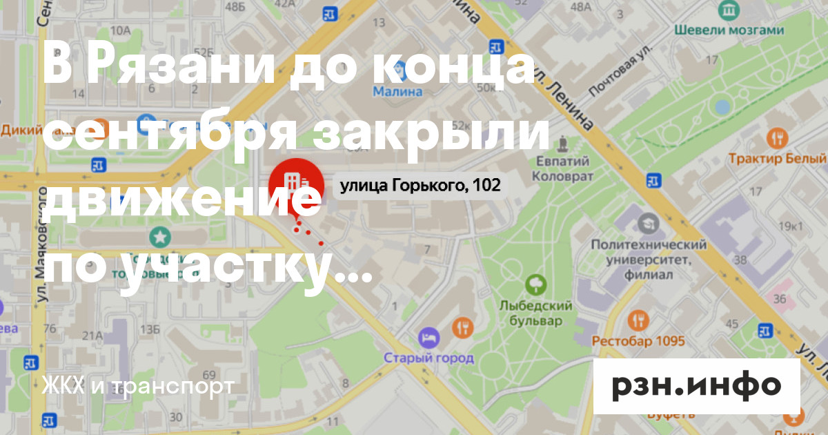 В Рязани до конца сентября закрыли движение по участку улицы Горького. Об этом сообщает администрация города.