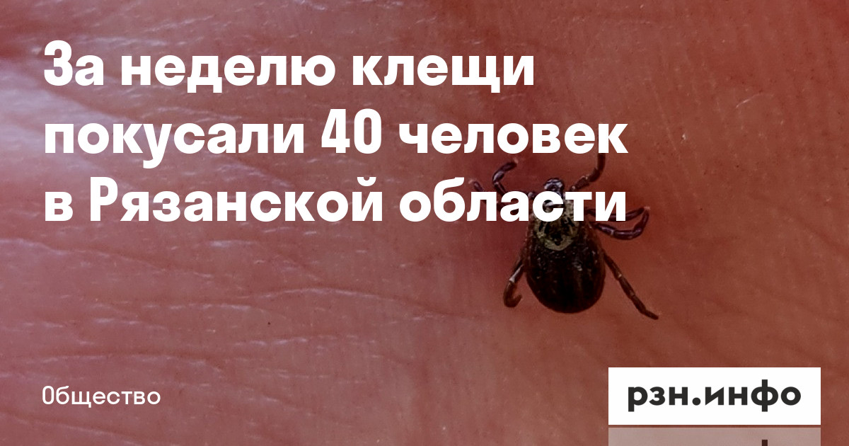 По данным ведомства, на прошедшей неделе в медицинские организации Рязанской области обратилось 40 человек, пострадавших от укусов клещей, в том числе 13 детей.