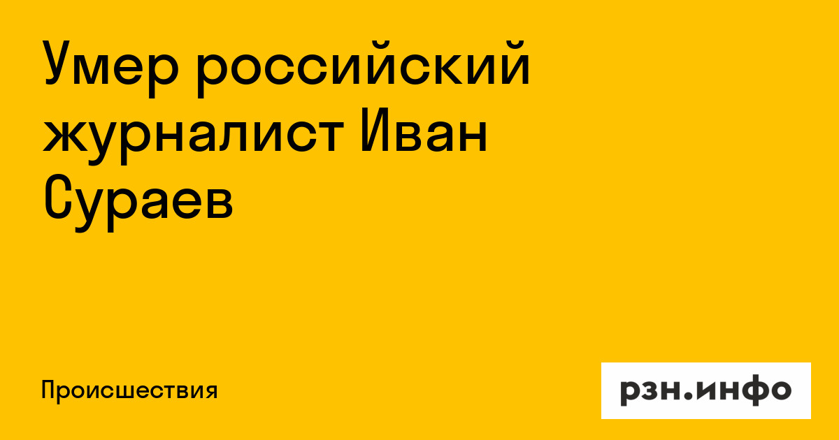 Ночью в среду, 18 сентября, умер корреспондент редакции силовых ведомств РИА «Новости», главной дирекции информации медиагруппы «Россия сегодня» Иван Сураев. Соответствующую информацию информационное агентство.