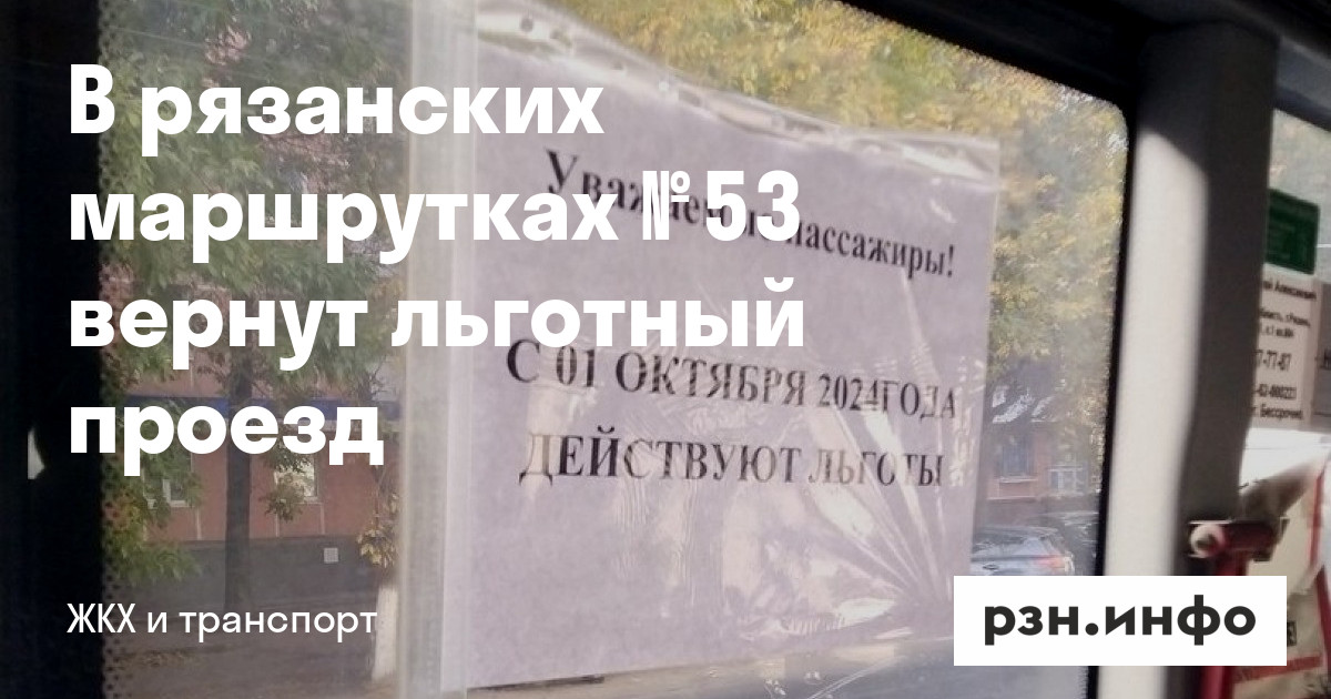 В рязанских маршрутках № 53 вернут льготный проезд. Об этом сообщает Telegram-канал stvchannel.