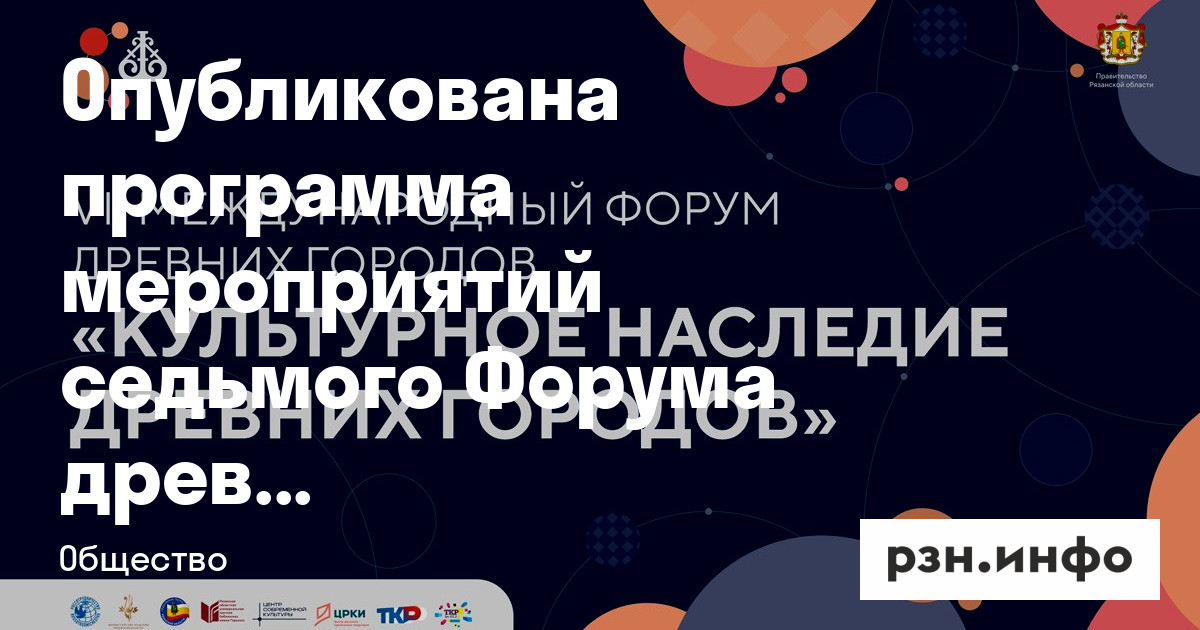 В Рязани состоится VII международный форум древних городов. Мероприятие организовано правительством Рязанской области под эгидой Комиссии России по делам ЮНЕСКО и поддержке Россотрудничества.