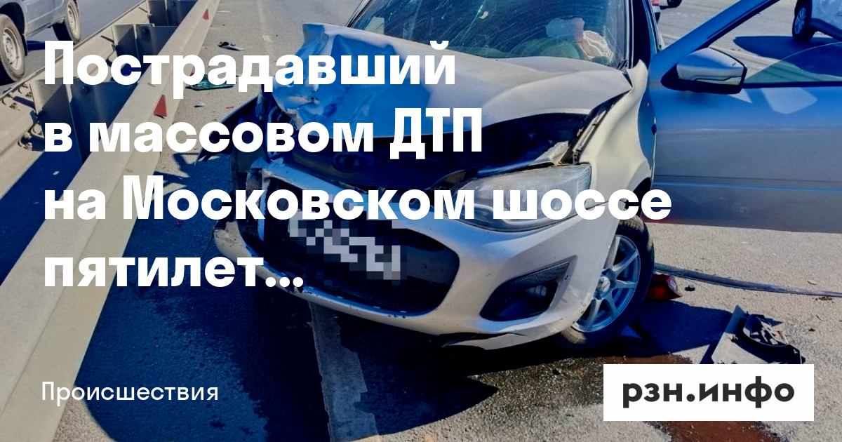 Пострадавший в массовом ДТП на Московском шоссе пятилетний мальчик скончался. Об этом сообщает Telegram-канал «Рязинформбюро» в субботу, 7 сентября.