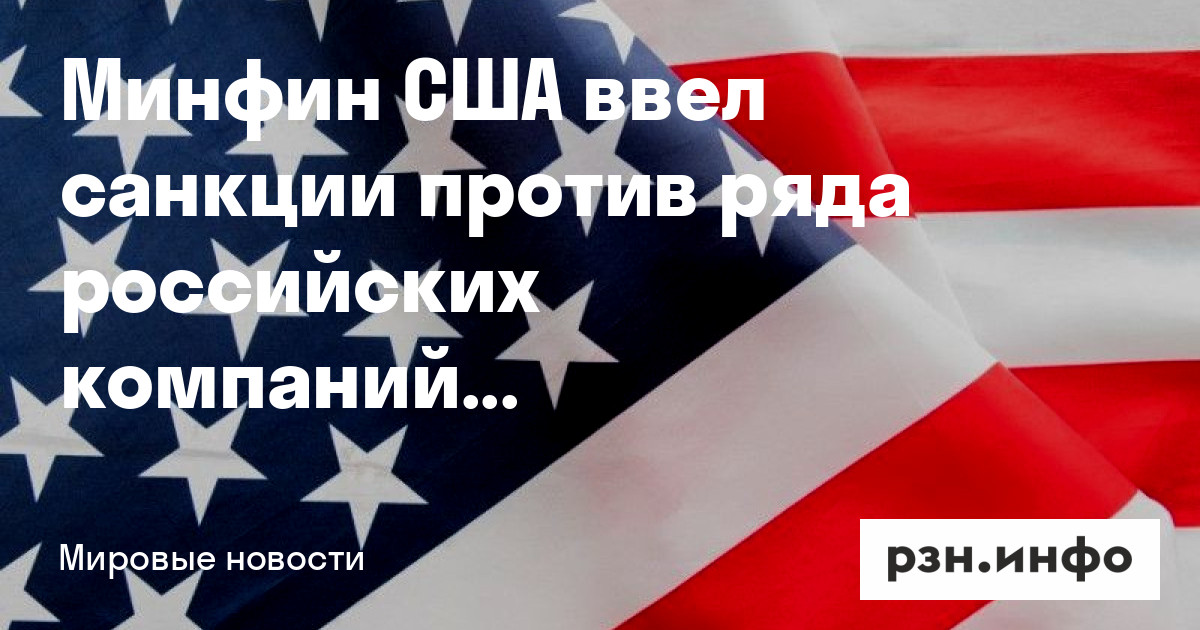 Минфин США ввел санкции против ряда российских компаний и лиц. Об этом сообщает РИА Новости.