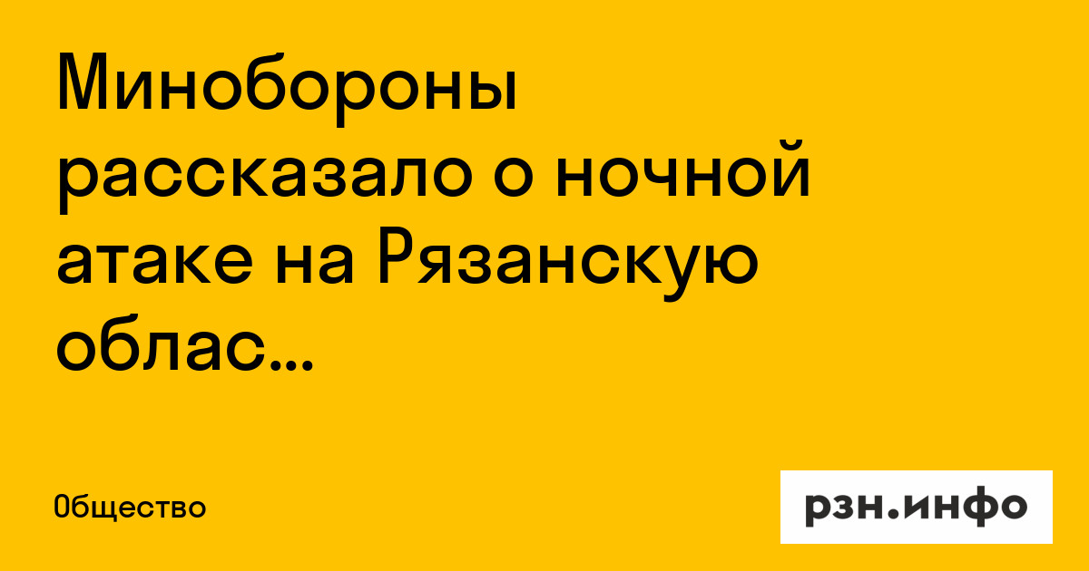Минобороны рассказало о ночной атаке на Рязанскую область